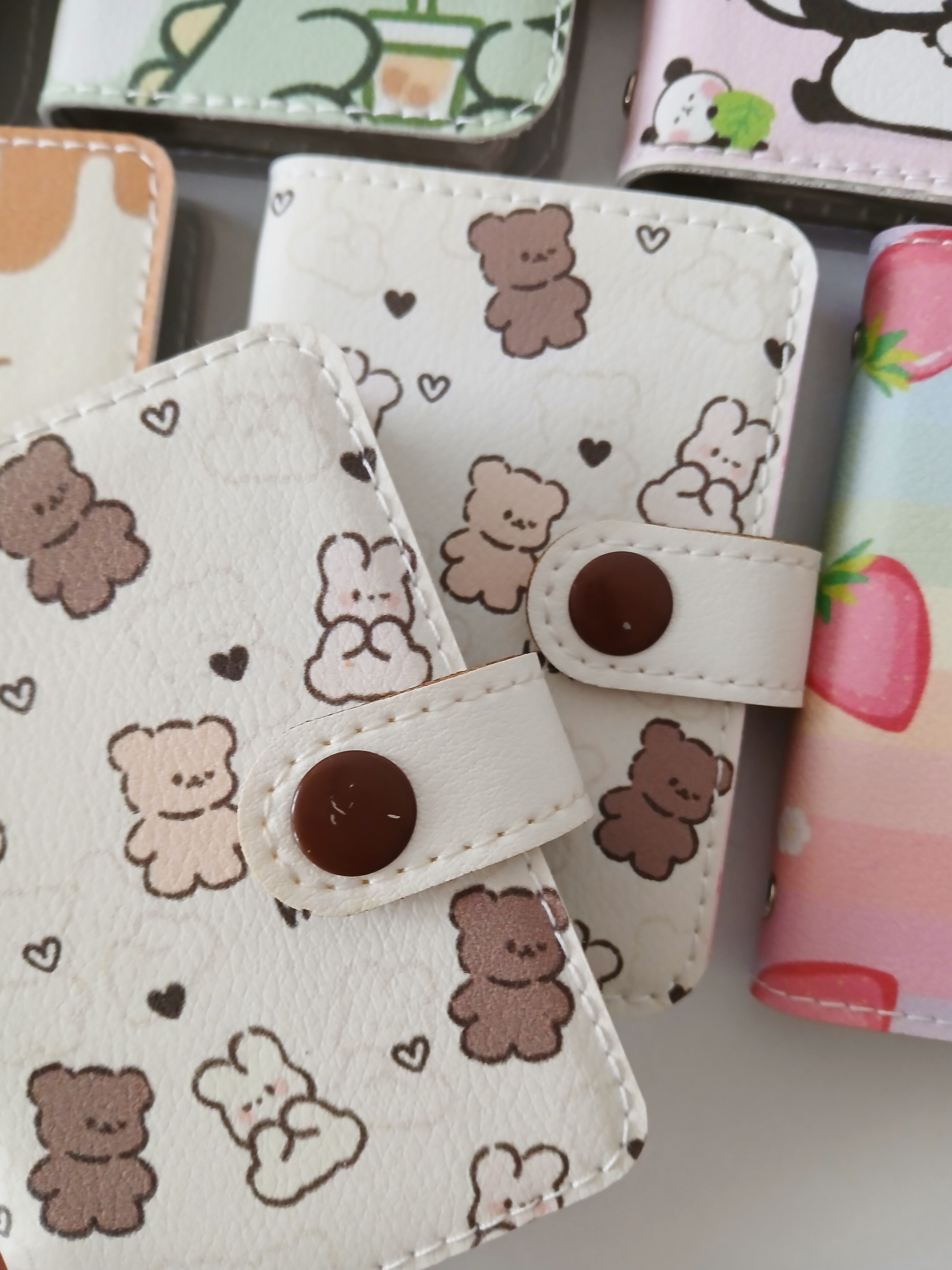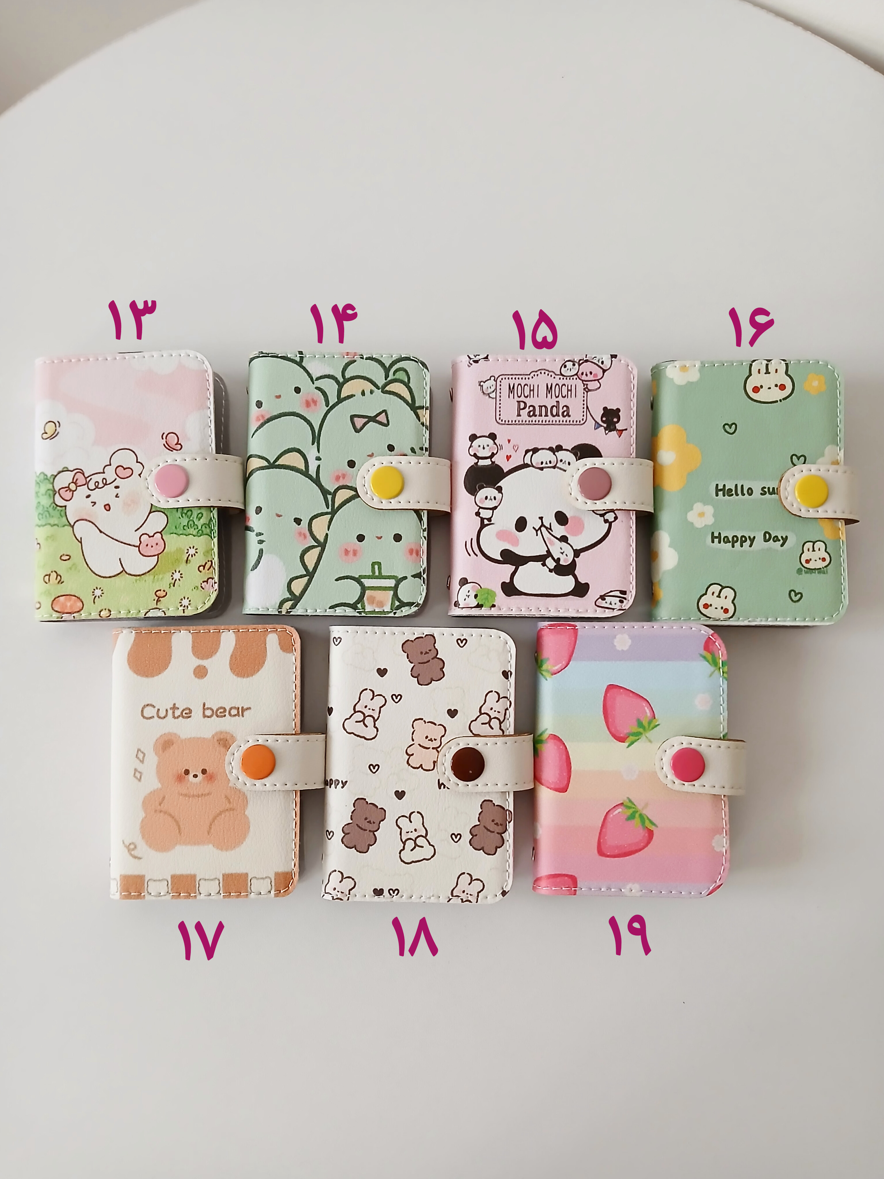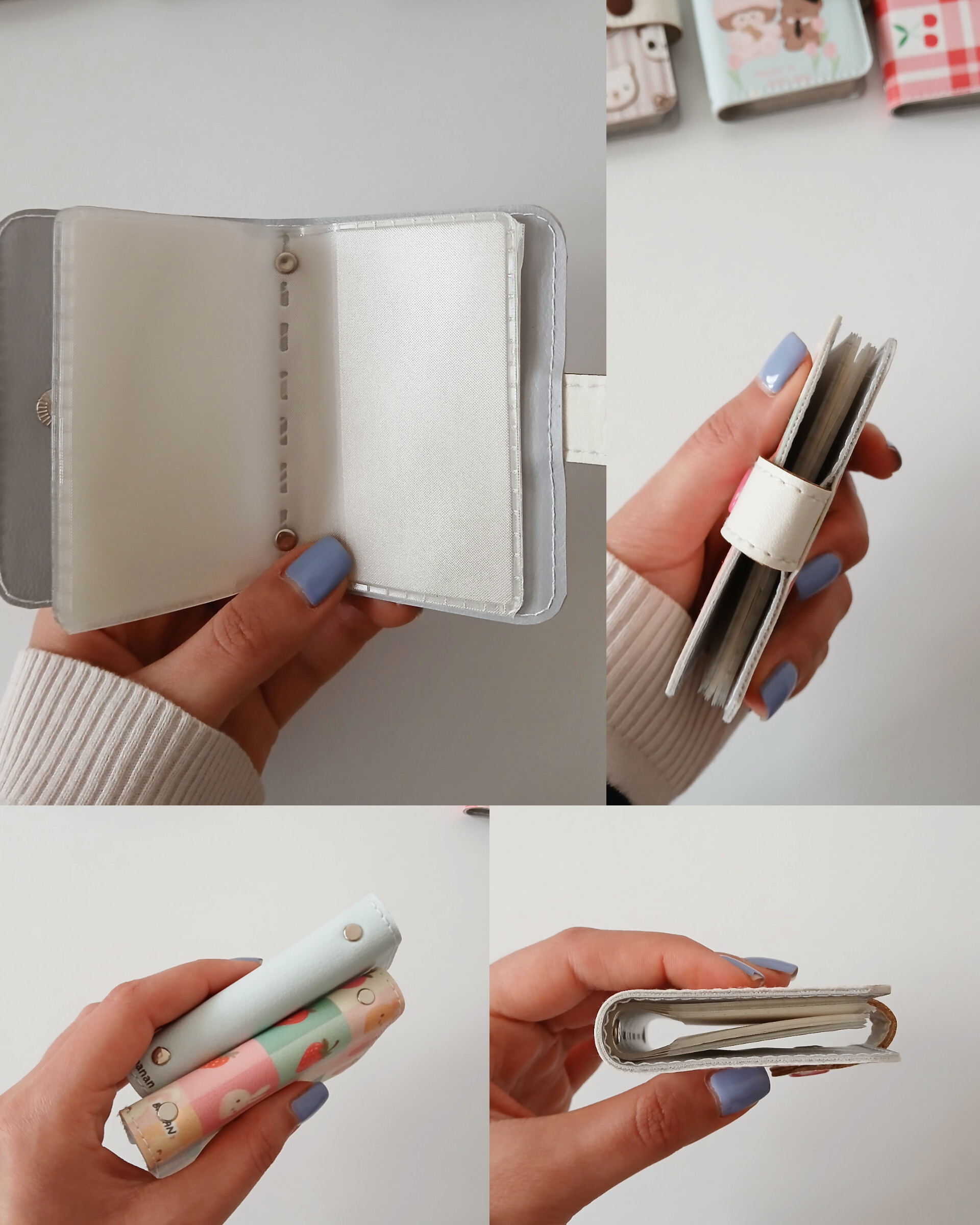 جنس چرم صنعتی چاپی با کیفیت دو سمت طرحدار ابعاد ۱۰.۷ سانت مقاوم سازی شده دارای آستر چرمی دارای ۱۰ جای کارت آلبومی از جنس طلق خیلی ضخیم ضخیم ترین جنس طلق موجود در بازار دوخته شده با چرخ کد ۱۸ ایراد جزیی داره