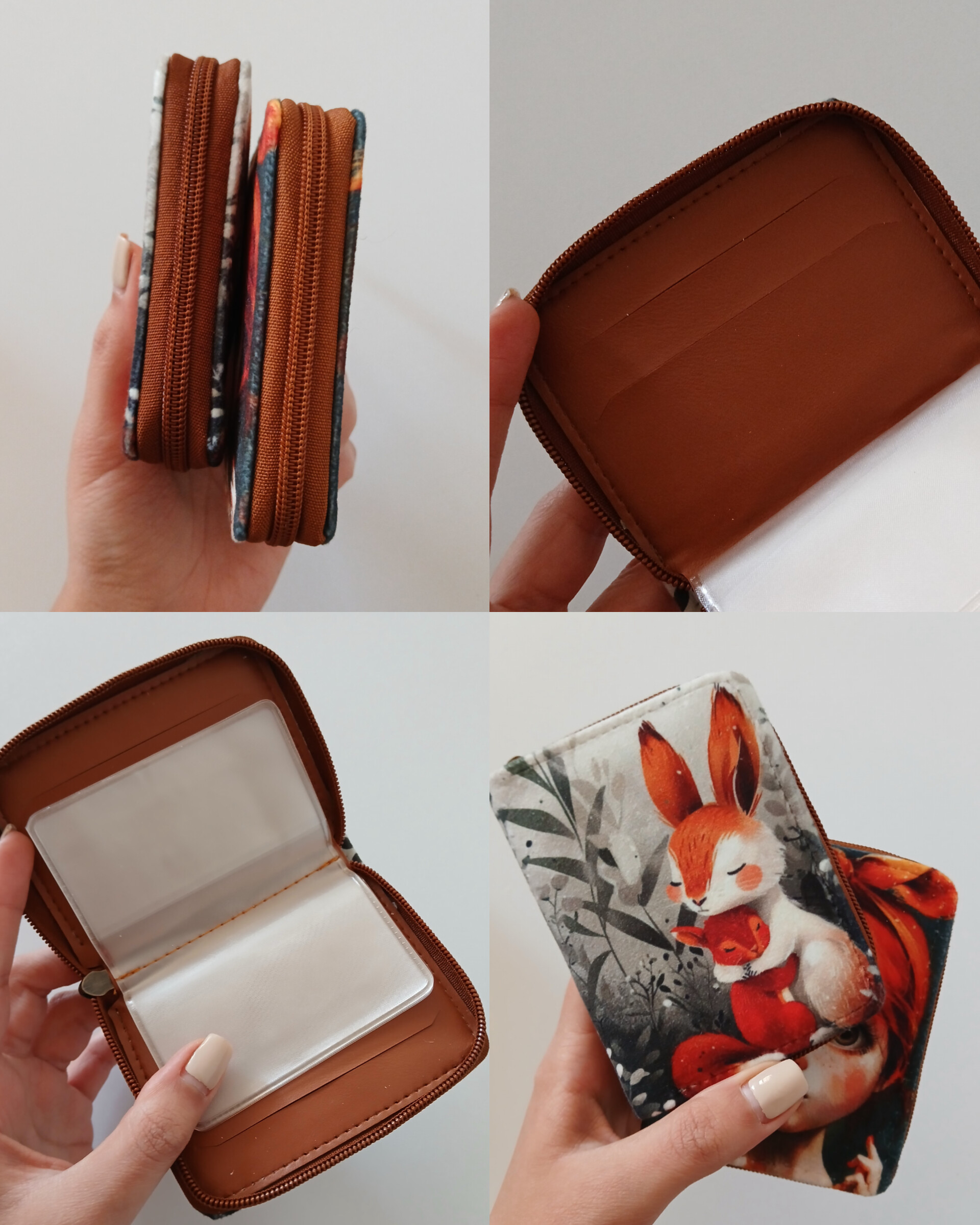 جنس رویه پارچه مخمل داخل چرم صنعتی ظرفیت ۴ کارت چرمی ۱۰ تا پلاستیکی دو سمت طرحدار ابعاد ۱۱.۸ ضخامت ۲ سانت